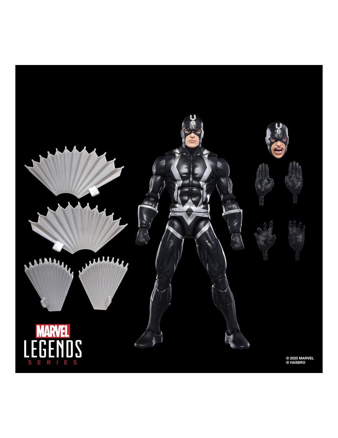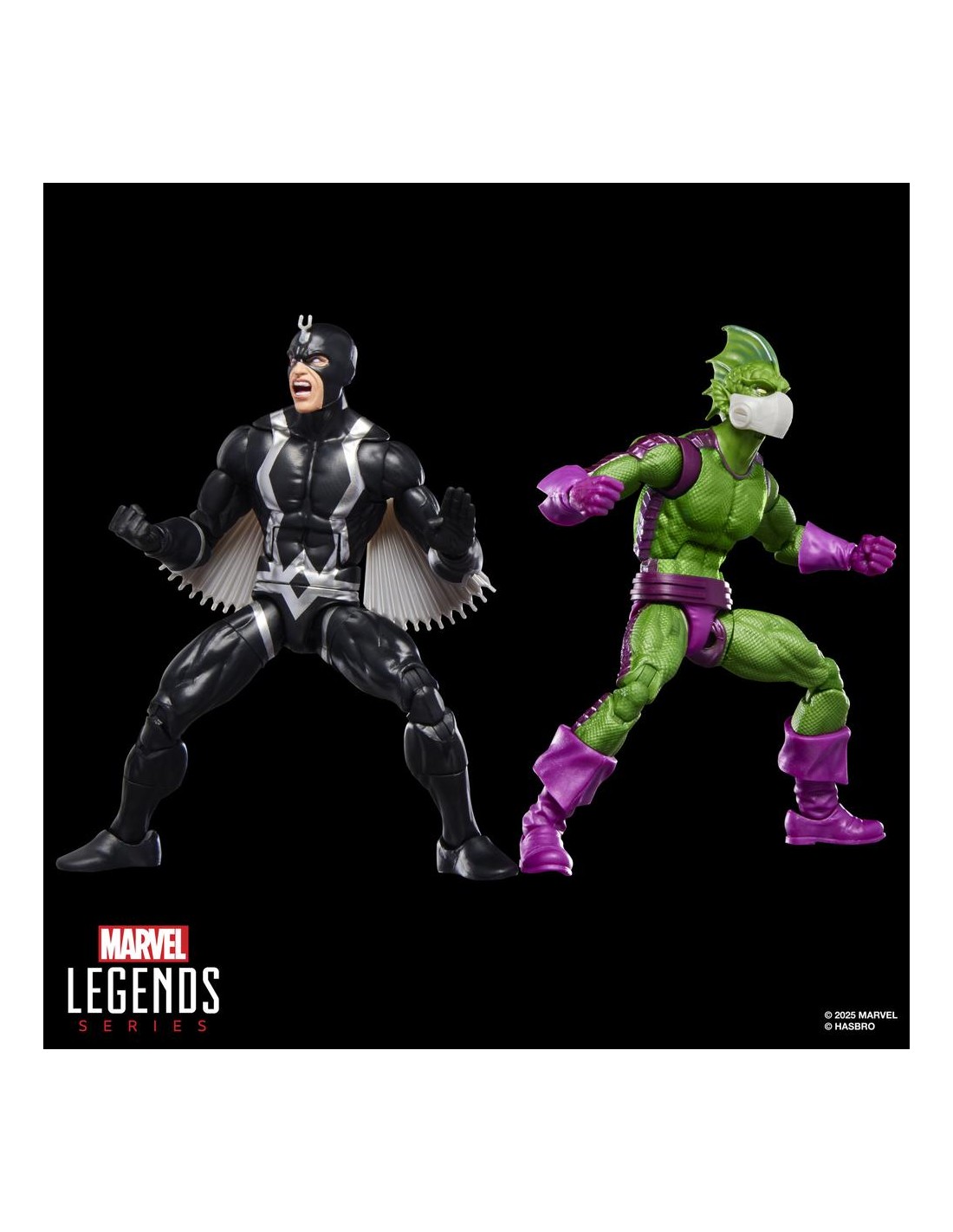 Hasbro suma a la colección Marvel Legends Series este pack de dos figuras articuladas de Black Bolt (Rayo Negro en España) y Triton, dos de los Inhumanos más famosos de los comics de Marvel. Cada figura mide aproximadamente 15 cm y cuenta con un acabado premium que reproduce con gran detalle el estilo clásico de los cómics. El pack incluye como accesorios 4x manos, 4x alas y 1x cabeza alternativa con la boca abierta para la figura de Black Bolt, además de 1x par de manos y 1x cabeza adicionales para la de Triton. Cada figura cuenta con más de 20 puntos de articulación, lo que permite recrear diversas poses dinámicas. Se presenta en una caja ilustrada de edición especial. UNIDADES LIMITADAS.