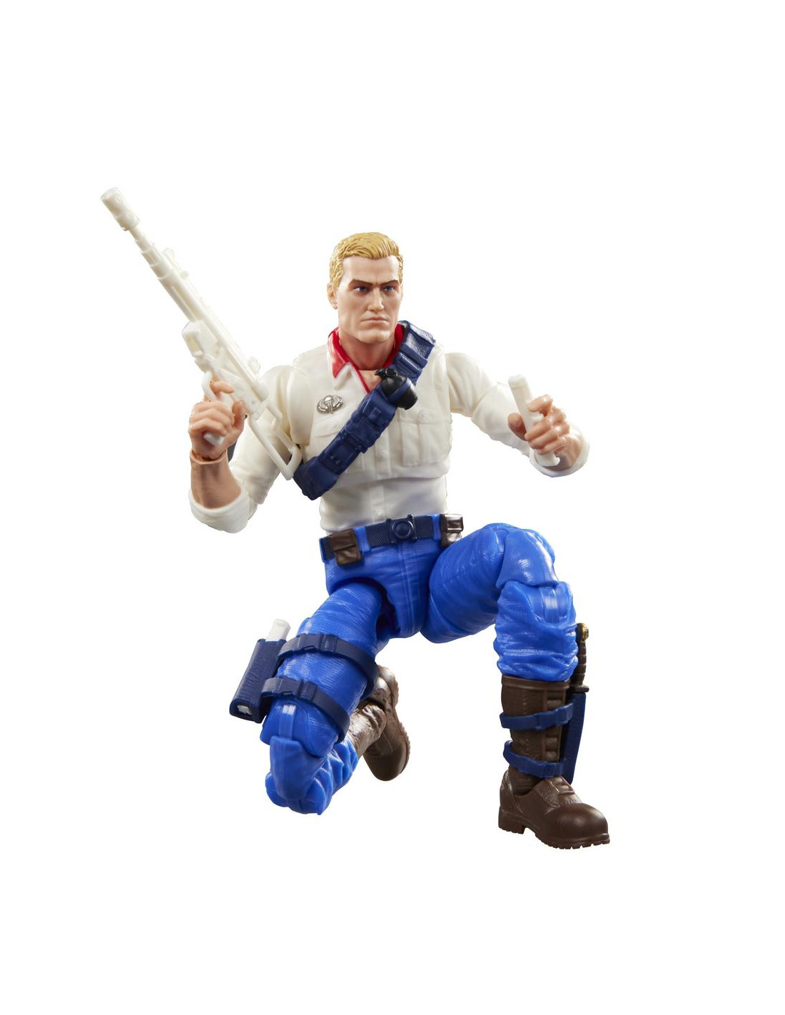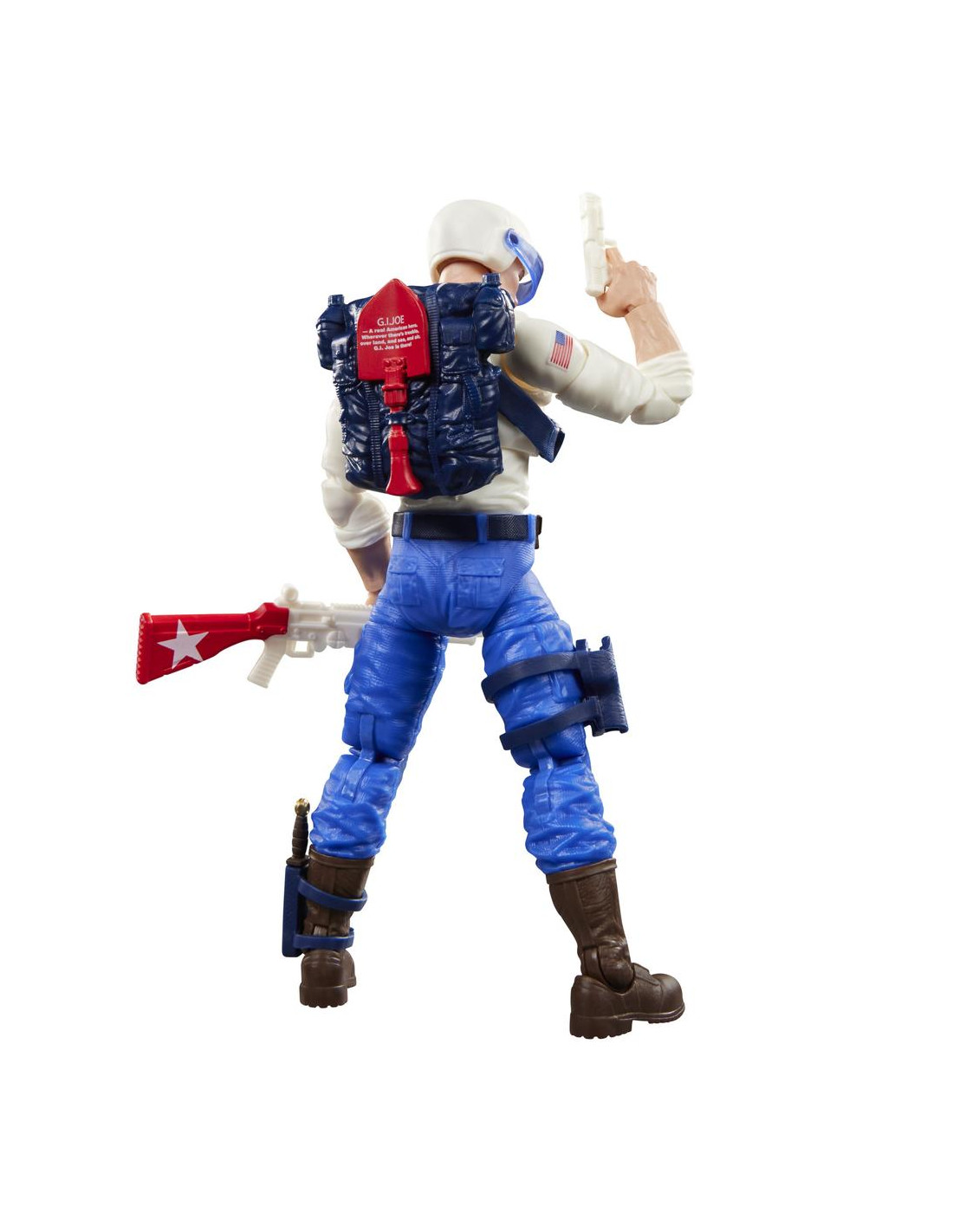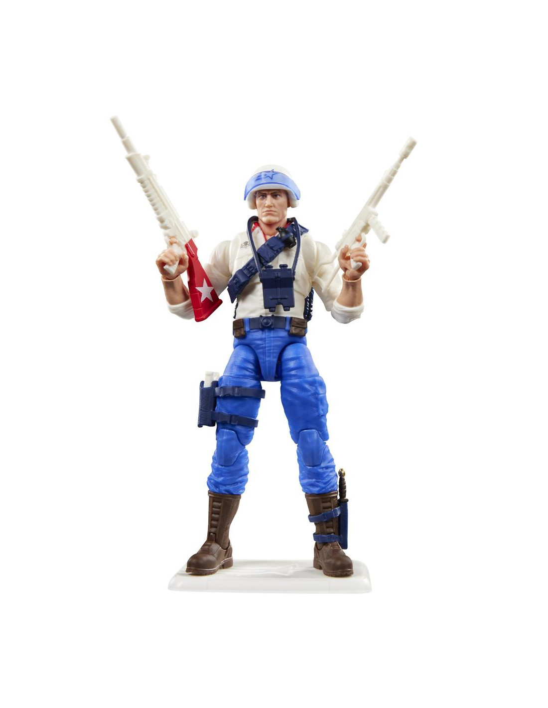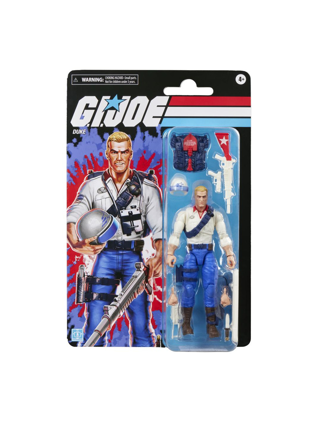 Hasbro presenta la figura de Duke en su versión USA con embalaje retro, basada en la icónica licencia "G.I. Joe". Esta figura articulada de 15 cm actualiza el diseño clásico del personaje para conmemorar el 250º aniversario de la Declaración de Independencia de los Estados Unidos. Incluye: 1x casco, 1x prismáticos, 1x mochila, 1x cuchillo, 1x base con clavijas, 3x armas de fuego y 1x par de manos alternativas. Se presenta en un embalaje tipo blíster inspirado en la línea A Real American Hero, ideal para coleccionistas. UNIDADES LIMITADAS.