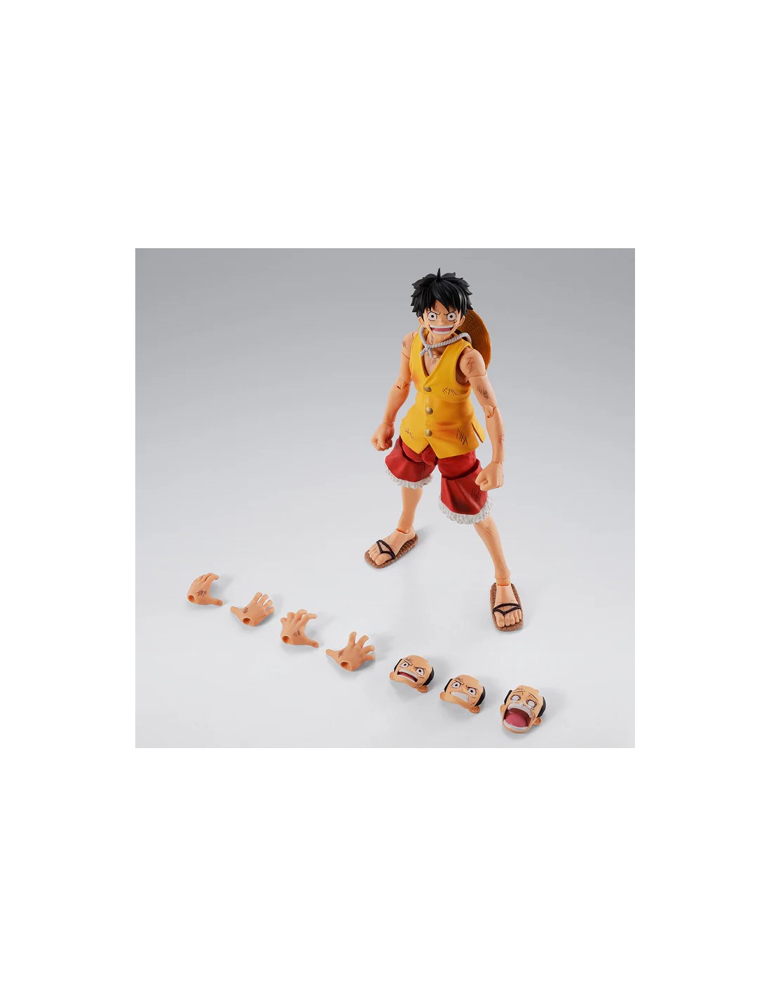 Tamashii Nations presenta dentro de su línea S.H.Figuarts la versión Marineford de la figura de Monkey D. Luffy, protagonista del anime "One Piece". Tiene una altura aproximada de 14,5 cm y está fabricada en PVC y ABS. Incluye 2x manos intercambiables, 3x placas faciales adicionales (una de ellas llorando) y 1x sombrero de paja con cordón. Gracias a la articulación avanzada de eje móvil y el uso de piezas flexibles, es posible recrear las intensas escenas de la batalla del arco argumental Marineford con gran dinamismo. UNIDADES LIMITADAS.