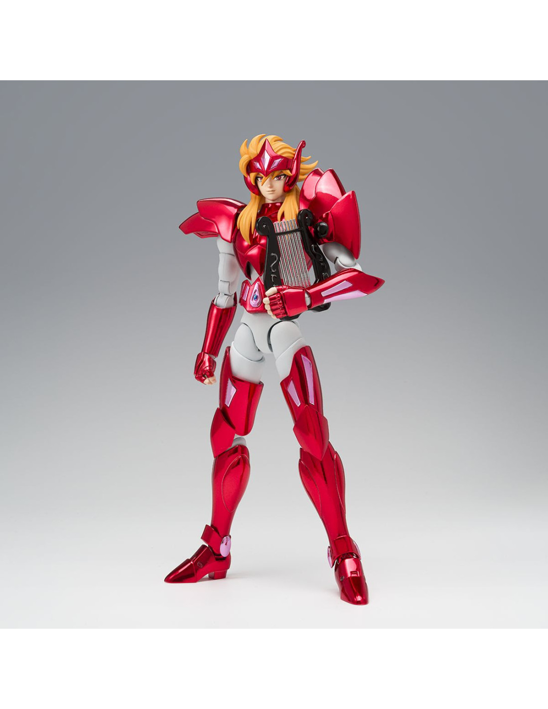 El mayor héroe de Asgard, Mime, llega a la colección Saint Cloth Myth Ex de Tamashii Nations. El elegido como God Warrior de Benetnasch y representante de la Estrella Eta cuenta por fin con una figura de 17 cm. de altura basada en el personaje del anime "Saint Seiya". Incluye 4x expresiones faciales extra (enfadado, de combate, serio y tranquilo), 6x pares de manos, 1x parte para el pelo y 1x arpa para utilizar su técnica "Stringer Requiem". Además, gracias a su armadura, puedes montar el modo objeto y formar el símbolo de la constelación de Benetnasch. UNIDADES LIMITADAS